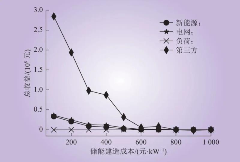 圖9 全開放市場下儲能成本對各方收益的影響