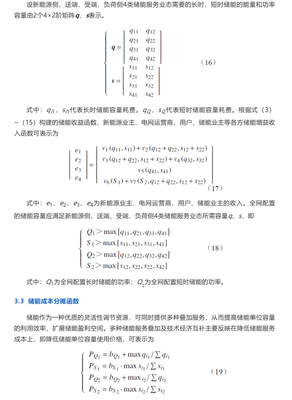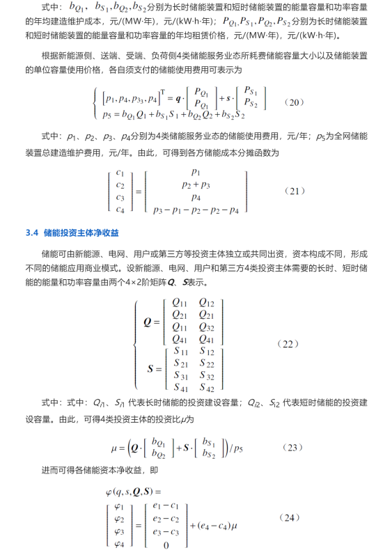 設新能源側(cè)、送端、受端、負荷側(cè)4類儲能服務業(yè)態(tài)需要的長時、短時儲能的能量和功率容量由2個4×2階矩陣q、s表示。