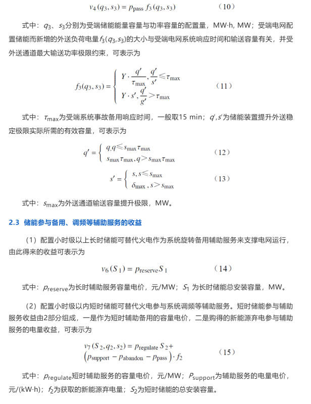 (2)受端電網(wǎng)配置小時級及以下短時儲能作為外送事故備用,可提升外送穩(wěn)態(tài)輸送極限、提高受端電網(wǎng)受電能力,提升新能源外送電量,其收益可表示為