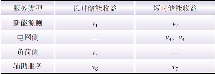 表 1 儲能服務不同使用實體的收益構(gòu)成