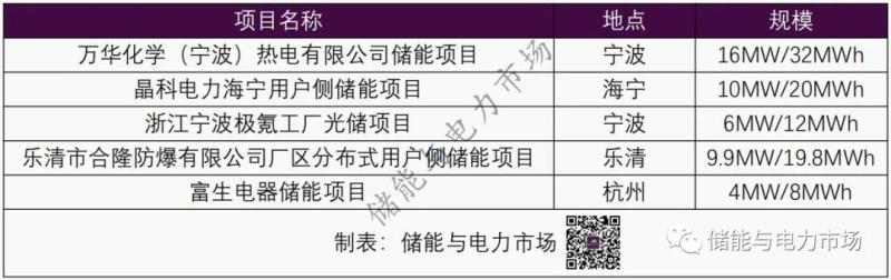 表:浙江部分MW級用戶側儲能項目