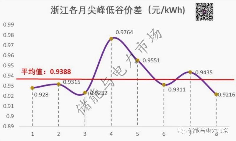 圖:浙江省各月尖峰低谷價差情況