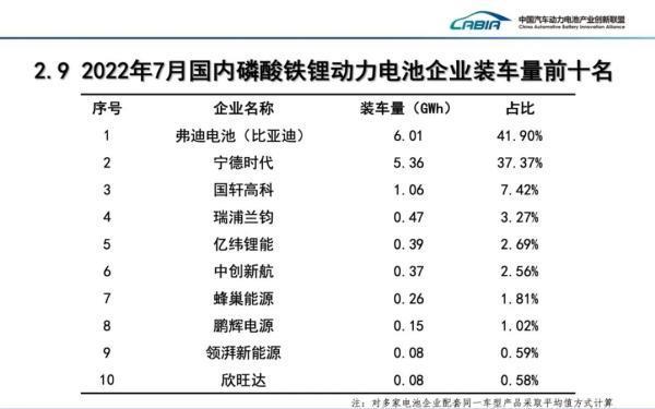 不過,在磷酸鐵鋰電池7月的裝車量上,比亞迪卻超過了寧德時(shí)代,占據(jù)了第一的位置。
