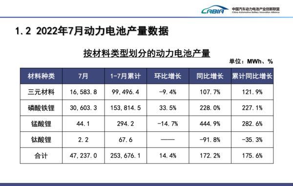 我國動(dòng)力電池總產(chǎn)量繼續(xù)飛速增長。7月,動(dòng)力電池產(chǎn)量共計(jì)47.2GWh,同比增長172.2%,環(huán)比增長14.4%。其中三元電池產(chǎn)量16.6GWh,占總產(chǎn)量35.1%,同比增長107.7%,環(huán)比下降9.4%;磷酸鐵鋰電池產(chǎn)量30.6GWh,占總產(chǎn)量64.8%,同比增長228%,環(huán)比增長33.5%。1-7月,我國動(dòng)力電池累計(jì)產(chǎn)量253.7GWh,累計(jì)同比增長175.6%。其中三元電池累計(jì)產(chǎn)量99.5GWh,占總產(chǎn)量39.2%,累計(jì)同比增長121.9%;磷酸鐵鋰電池累計(jì)產(chǎn)量153.8GWh,占總產(chǎn)量60.6%,累計(jì)同比增長227.1%。