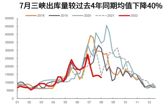 從水利角度來看,今年旱情嚴(yán)重,嚴(yán)重影響了長(zhǎng)江流域的水量。6月中旬以來,長(zhǎng)江流域降水由偏多轉(zhuǎn)為偏少,其中,6月下旬偏少2成,7月偏少3成多,尤其是長(zhǎng)江下游干流及鄱陽湖水系偏少5成左右,為近10年同期最少。