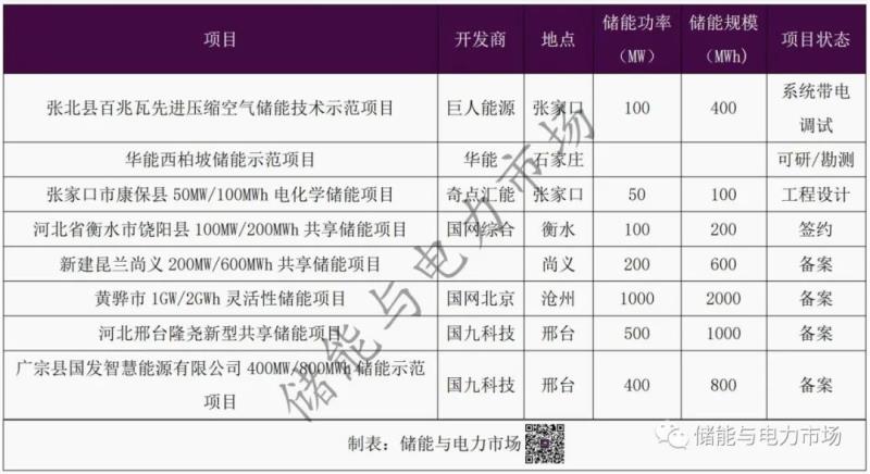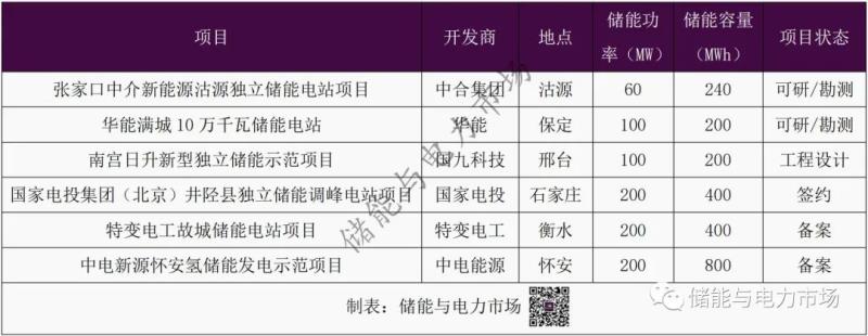 表:河北獨(dú)立儲(chǔ)能項(xiàng)目進(jìn)展(非示范項(xiàng)目)