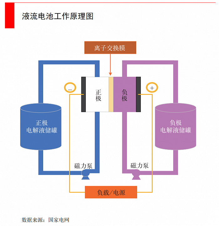 對于釩液流電池,則是更遠(yuǎn)期的研發(fā)目標(biāo)。釩液流電池的技術(shù)路徑完全不同于鋰離子、鈉離子電池,而是與氫燃料電池原理類似,它是一種活性物質(zhì)呈循環(huán)流動(dòng)液態(tài)的氧化還原電池,它的工作原理是通過釩化合價(jià)的變化,來實(shí)現(xiàn)電能與化學(xué)能之間的轉(zhuǎn)化。