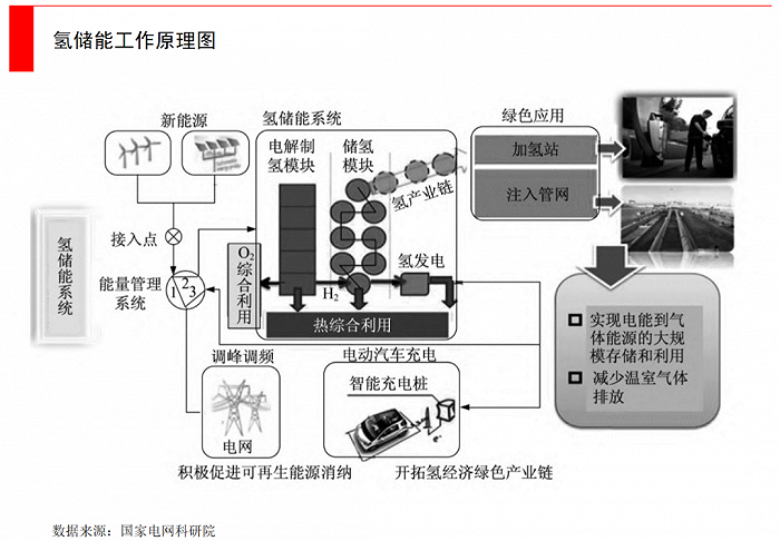 氫儲(chǔ)能:目前爭議還很大的一種技術(shù)路徑。工作邏輯是通過電解水制氫,將多余的電能轉(zhuǎn)化為氫能儲(chǔ)存起來。氫作為儲(chǔ)能介質(zhì),還可以直接用于燃料電池。但目前大規(guī)模制氫的技術(shù)還不夠成熟,能耗很高,以及配套的氫儲(chǔ)運(yùn)技術(shù)也不夠成熟,能利用氫能的場景也比較少。