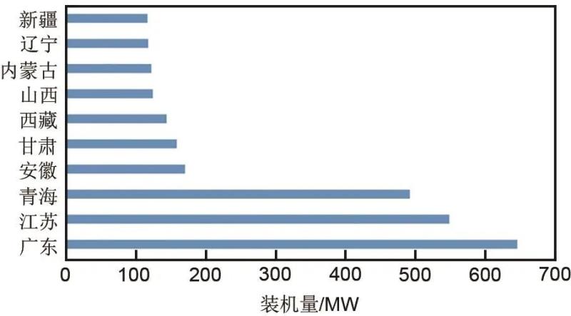 圖1 2020年國內(nèi)電化學(xué)儲(chǔ)能裝機(jī)主要省份及裝機(jī)量