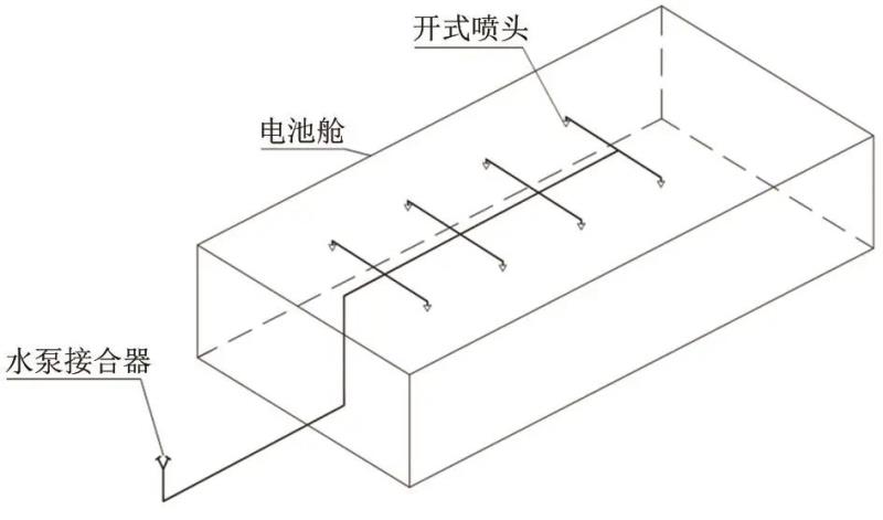 作為應(yīng)急備用措施,建議設(shè)置全氟己酮滅火系統(tǒng)的儲能電池艙設(shè)置半固定開式水噴淋系統(tǒng)。