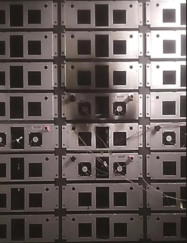每個電池簇設(shè)置8個監(jiān)測模塊,并設(shè)置一個中繼模塊,負責監(jiān)測信號傳輸,并且聯(lián)動分區(qū)電動球閥。當某單體電池發(fā)生熱失控致火,安裝在對應(yīng)電池簇的監(jiān)測模塊探測到火情,并反饋到滅火裝置主機啟動系統(tǒng),同時聯(lián)動打開該區(qū)電動球閥,該電池簇的12只霧化噴頭同時噴放滅火劑。霧化噴頭采用多點間歇式點噴,第一次噴射以撲滅明火為主,后續(xù)點噴抑制熱失控,其噴射程序同模型試驗。系統(tǒng)具有自動控制、本地手動、遠程手動控制和應(yīng)急操作等功能。