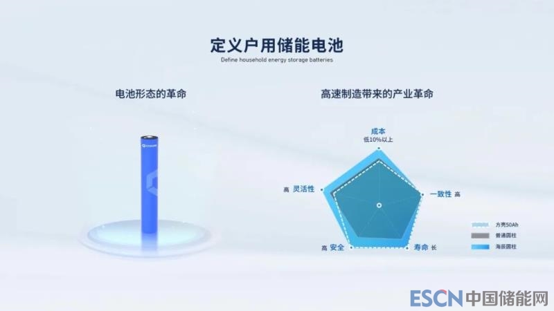 海辰儲能除在電力儲能專用電池做了新品布局,也重新定義戶用儲能專用電池,推出大圓柱電池產(chǎn)品,從高速制造和電池形態(tài)可定制,帶來戶儲產(chǎn)業(yè)大變革。
