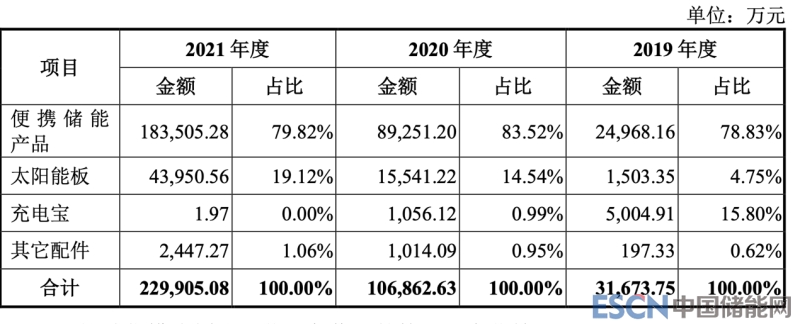 從收入增速來(lái)看,2018-2021年銷售金額年均復(fù)合增速達(dá)273.5%,其中便攜式儲(chǔ)能業(yè)務(wù)做出的突出貢獻(xiàn)。從 2018 年的 0.64 億元,到 2020 年的 8.93 億元,儲(chǔ)能電源板塊的營(yíng)收翻了近 14 倍。到了2021年,便攜儲(chǔ)能業(yè)務(wù)的銷售金額達(dá)到18.35億元,成為公司的最核心業(yè)務(wù)。具體可參見(jiàn)下圖