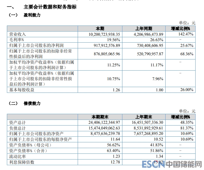中國儲能網(wǎng)訊:8月22日,貝特瑞(BJ835185,股價66.51元,市值484億元)發(fā)布2022年半年報。今年上半年,貝特瑞實現(xiàn)營業(yè)收入約102億元,同比增長142.47%;實現(xiàn)歸屬于上市公司股東的凈利潤約9.2億元,同比增長25.67%。