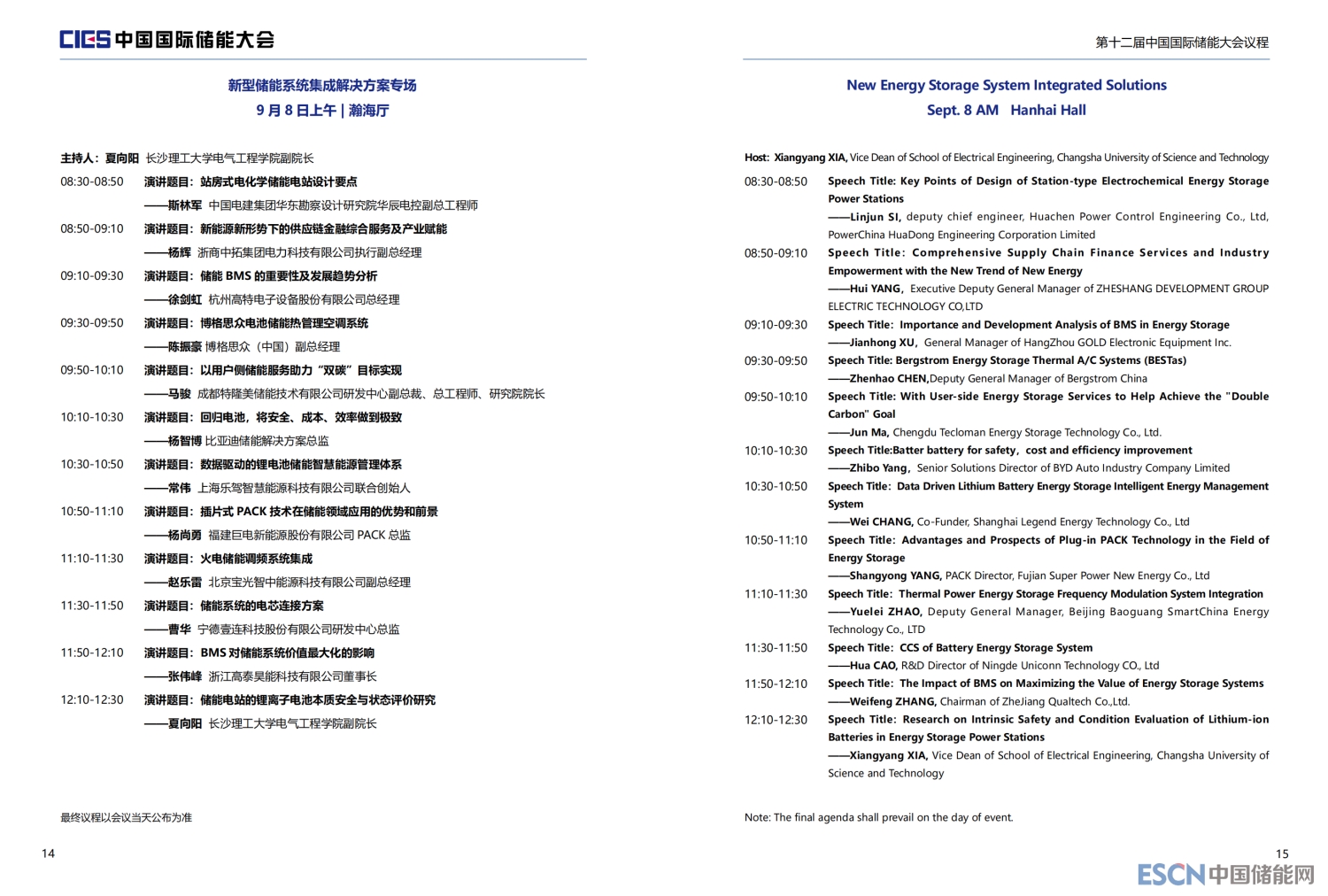 本次大會(huì)將安排有大會(huì)開幕式、院士專題報(bào)告及儲(chǔ)能產(chǎn)業(yè)高峰對(duì)話、“雙碳”目標(biāo)下儲(chǔ)能產(chǎn)業(yè)發(fā)展新路徑、新型電力系統(tǒng)與儲(chǔ)能系統(tǒng)整體解決方案、儲(chǔ)能安全與系統(tǒng)集成、新型儲(chǔ)能系統(tǒng)集成解決方案、儲(chǔ)能電站規(guī)劃與設(shè)計(jì)、新型儲(chǔ)能電池技術(shù)與應(yīng)用、儲(chǔ)能檢測(cè)、認(rèn)證與標(biāo)準(zhǔn)、儲(chǔ)能安全與消防系統(tǒng)、儲(chǔ)能系統(tǒng)設(shè)計(jì)與裝置、新型物理儲(chǔ)能技術(shù)及應(yīng)用、儲(chǔ)能電站并網(wǎng)與調(diào)度、儲(chǔ)能與電力市場(chǎng)、儲(chǔ)能資本市場(chǎng)、共享儲(chǔ)能與虛擬電廠、電力輔助服務(wù)及現(xiàn)貨交易等16個(gè)專場(chǎng)論壇。