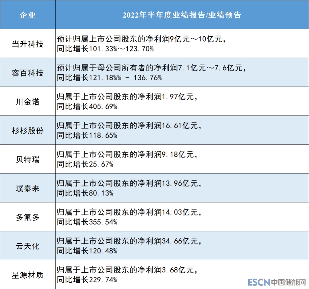 電解液企業(yè)多氟多、云天化,隔膜企業(yè)星源材質(zhì)等上半年凈利潤(rùn)漲幅也均超過(guò)一倍。