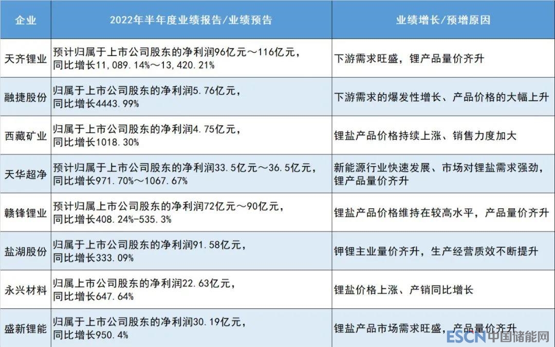 天齊鋰業(yè)預(yù)計(jì)上半年歸屬上市公司股東的凈利潤(rùn)為96億元~116億元,較上年同期盈利的0.8579億元,同比暴增110~134倍。