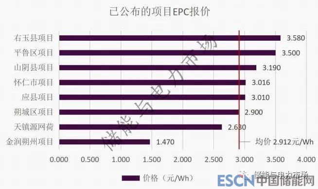 在上述的19個(gè)項(xiàng)目中已有8個(gè)項(xiàng)目的EPC投標(biāo)報(bào)價(jià)進(jìn)行了公布,報(bào)價(jià)區(qū)間為1.47~3.58元/Wh,均價(jià)為2.912元/Wh。其中大多數(shù)的項(xiàng)目?jī)r(jià)格在3元/Wh左右,遠(yuǎn)遠(yuǎn)高于其他地區(qū)的儲(chǔ)能項(xiàng)目EPC中標(biāo)價(jià)。據(jù)了解,這或與項(xiàng)目配置重卡換電系統(tǒng)有關(guān)。