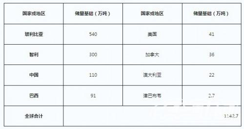 全球鋰礦資源基礎儲量分布