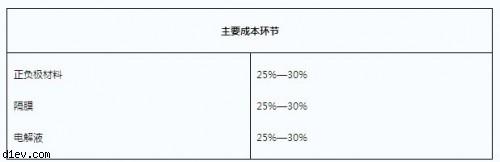 按照鋰離子電池的原材料成本分析結果,正負極材料、隔膜和電解液的份額基本相當,即不能忽略其中的任一環(huán)節(jié),如下表所示?! ?