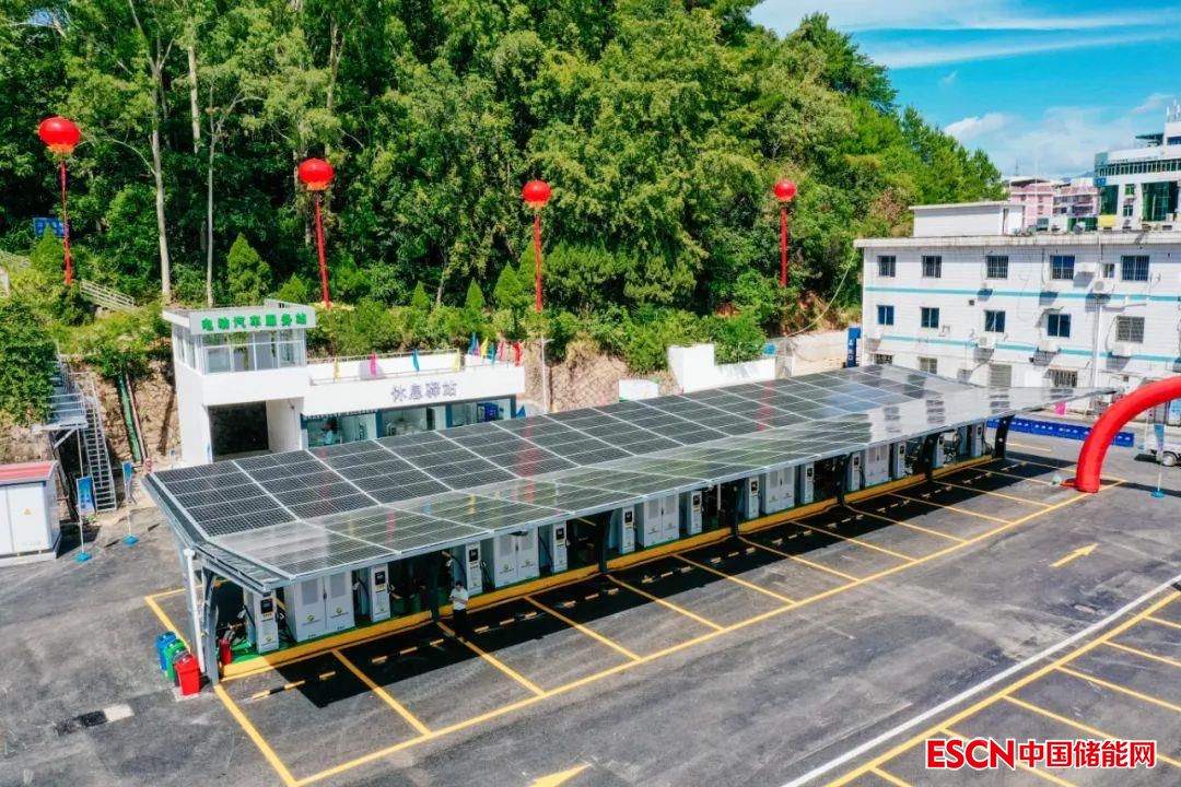 該站在充電車位上方鋪設(shè)有150片光伏雨棚,總面積約410平方米。光伏雨棚采用國內(nèi)領(lǐng)先的電池組件,發(fā)電總功率達82千瓦,按照龍巖地區(qū)平均日照時長4.5小時計算,日發(fā)電量可達369千瓦時,可實現(xiàn)年減排二氧化碳13.4噸,打造低碳綜合能源服務(wù)站。