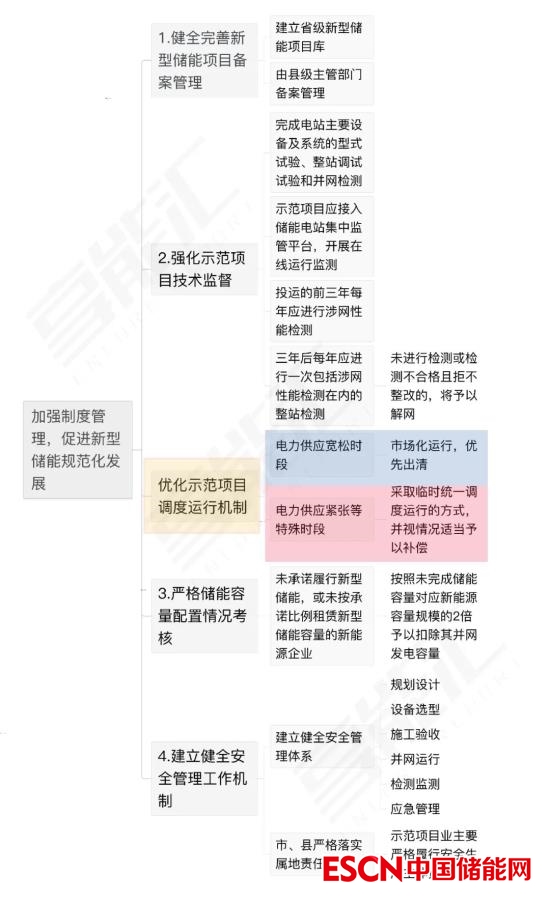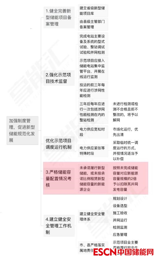 通過制度管理,促進新型儲能規(guī)范化發(fā)展部分,規(guī)定了備案管理、安全管理工作機制、技術(shù)監(jiān)督、配儲考核、調(diào)度機制五部分內(nèi)容。