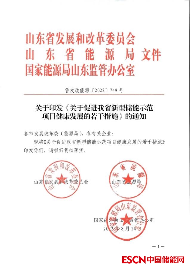 時間轉(zhuǎn)至2022年8月31日,山東省發(fā)改委、山東省能源局、國家能源局山東監(jiān)管辦公室三大部門聯(lián)合印發(fā)《關(guān)于促進我省新型儲能示范項目健康發(fā)展的若干措施》的通知(魯發(fā)改能源【2022】749號),有效期至2027年12月31日。