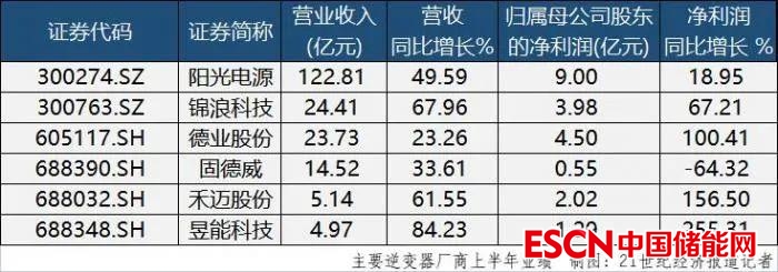 隨著A股上市公司中報(bào)披露的收尾,陽光電源(300274.SZ)、錦浪科技(300763.SZ)、固德威(688390.SH)、德業(yè)股份(605117.SH)、禾邁股份(688032.SH)、昱能科技(688348.SH)六家逆變器上市公司悉數(shù)公布了上半年的經(jīng)營(yíng)情況。