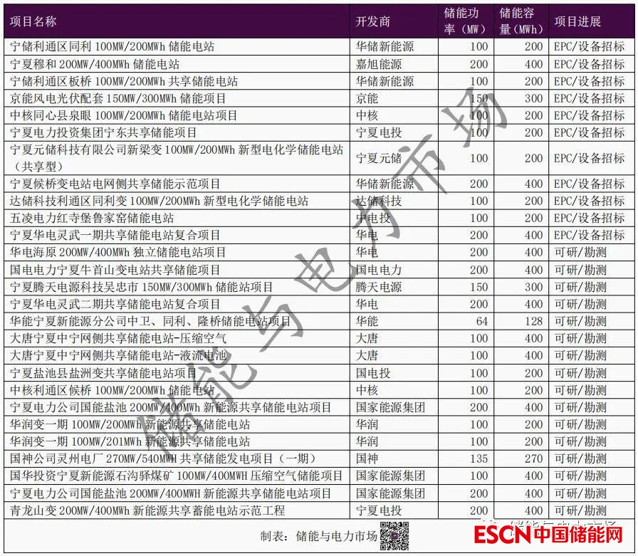 表:寧夏已啟動獨(dú)立式儲能項(xiàng)目