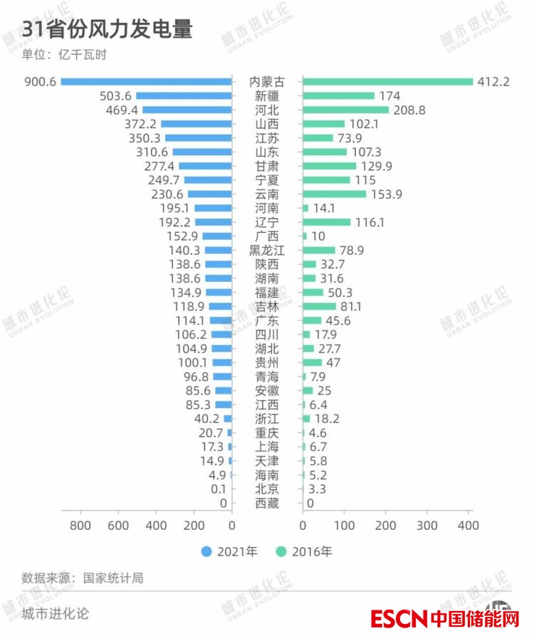2021年,風(fēng)力發(fā)電量前10名省份中,有8個(gè)都來(lái)自“三北”地區(qū),內(nèi)蒙古、新疆及河北分別位列前三。