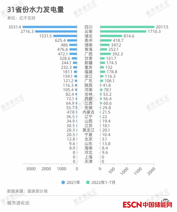 而在20年前,水電整體規(guī)模偏小,全部總量也才2476.9億千瓦時(shí),不及云南去年水平。