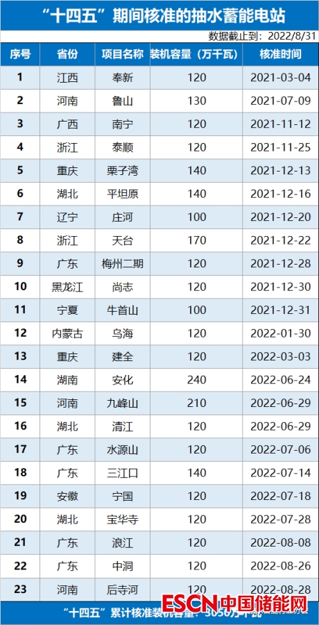 中國儲(chǔ)能網(wǎng)訊:截至 2022 年 8 月 31 日,“十四五”已核準(zhǔn) 23 座抽水蓄能電站,總裝機(jī)規(guī)模 3050 萬千瓦,項(xiàng)目投資規(guī)模超過 2000 億元。