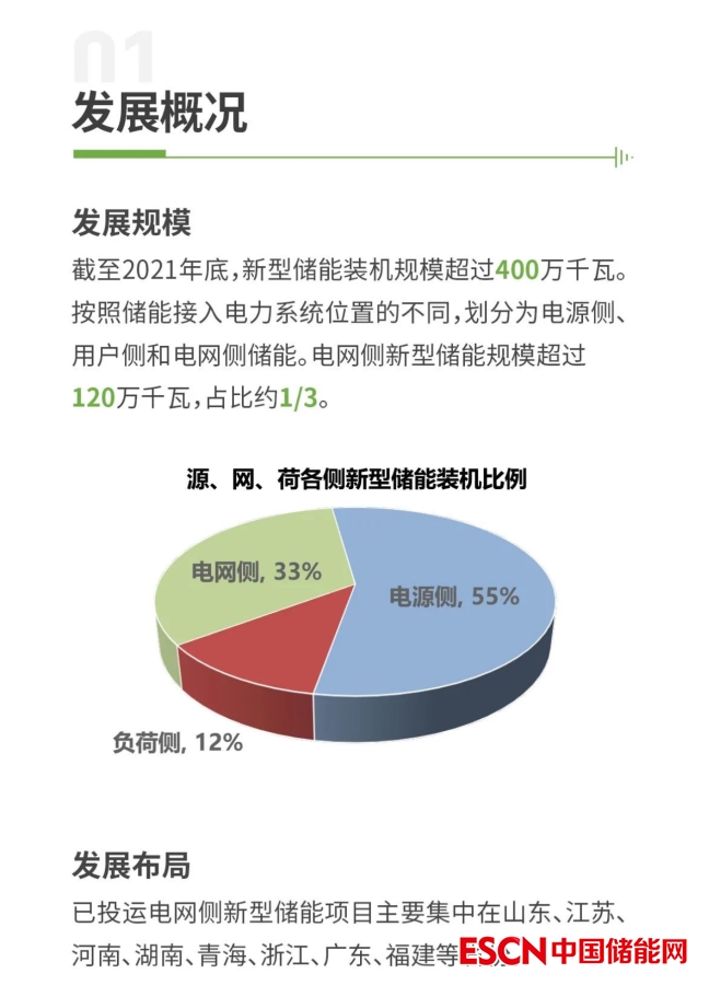 中國儲(chǔ)能網(wǎng)訊:近日,電規(guī)總院發(fā)布了《電網(wǎng)側(cè)新型儲(chǔ)能發(fā)展需求分析》PPT。PPT顯示截至2021年底,新型儲(chǔ)能裝機(jī)規(guī)模超過400萬千瓦。按照儲(chǔ)能接入電力系統(tǒng)位置的不同,劃分為電源側(cè)、用戶側(cè)和電網(wǎng)側(cè)儲(chǔ)能。電網(wǎng)側(cè)新型儲(chǔ)能規(guī)模超過120萬千瓦,占比約1/3。已投運(yùn)電網(wǎng)側(cè)新型儲(chǔ)能項(xiàng)目主要集中在山東、江蘇、河南、湖南、青海、浙江、廣東、福建等省份。