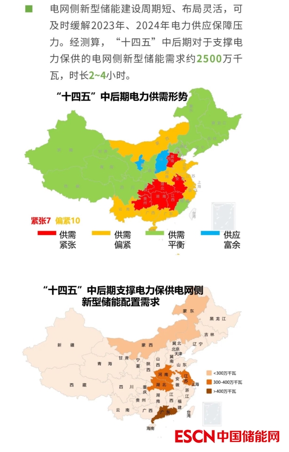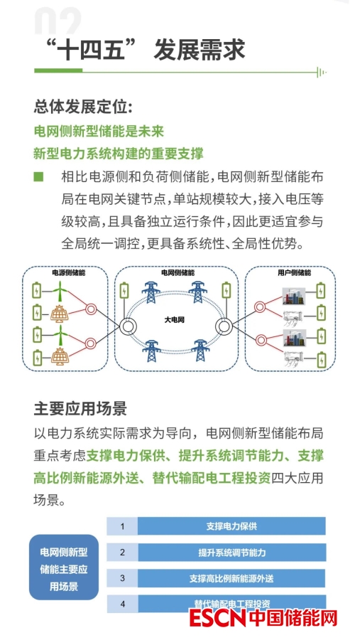 電規(guī)總院表示電網(wǎng)側(cè)新型儲(chǔ)能是未來新型電力系統(tǒng)構(gòu)建的重要支撐。據(jù)預(yù)測,“十四五”全國電網(wǎng)側(cè)新型儲(chǔ)能總需求規(guī)模約5500萬千瓦,時(shí)長2~4小時(shí)。應(yīng)用場景以支撐電力保供、提升地區(qū)電力系統(tǒng)調(diào)節(jié)能力為主,三北地區(qū)規(guī)模需求略高于中東部地區(qū)。