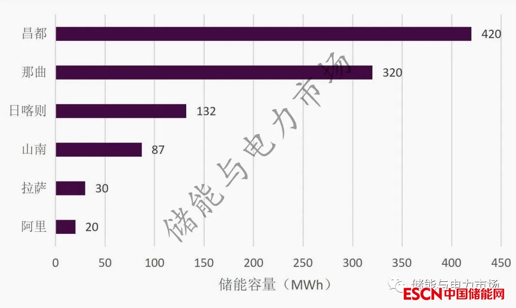 就項目的分布地區(qū)來看,昌都市分布項目最多,儲能容量最大,共計15個項目,儲能容量達420MWh,那曲以320MWh的儲能容量緊隨其后。