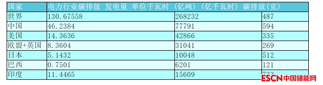 表 3 2020 年世界主要國(guó)家(地區(qū))發(fā)電量和碳排放有關(guān)指標(biāo)