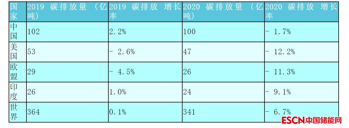 表2 2019-2020世界主要國(guó)家(地區(qū))碳排放總量