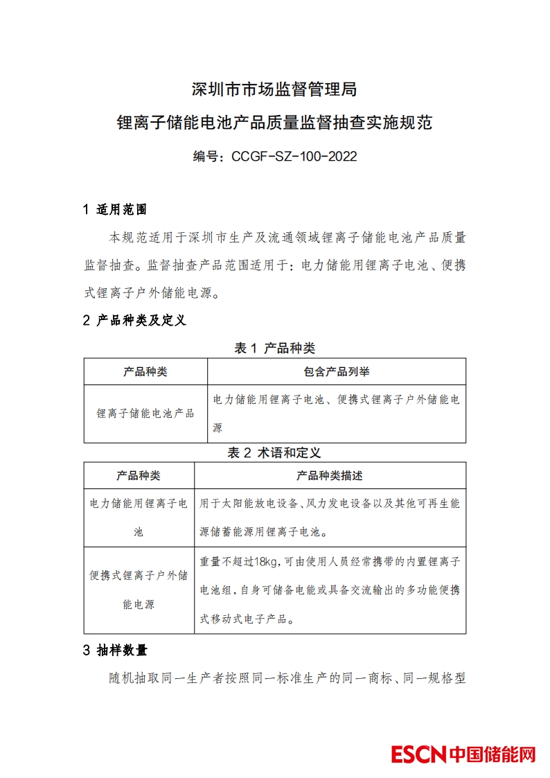 附件:《深圳市市場監(jiān)督管理局鋰離子儲能電池產(chǎn)品質(zhì)量監(jiān)督抽查實施規(guī)范》(編號:CCGF-SZ-100-2022)