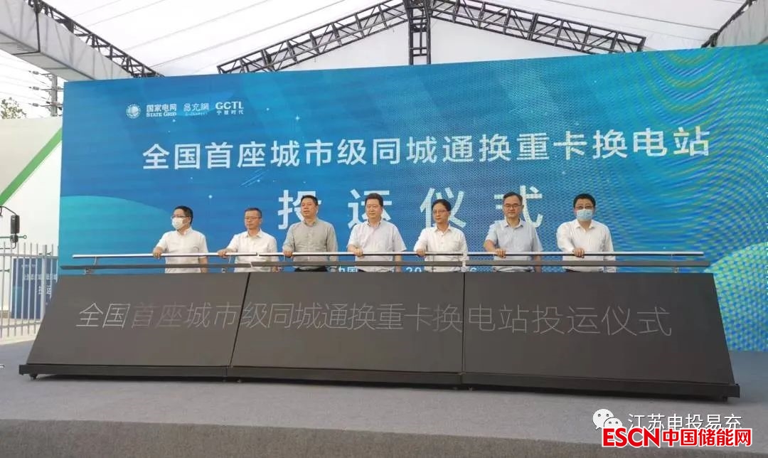 國(guó)網(wǎng)江蘇電動(dòng)汽車服務(wù)有限公司黨委書(shū)記陳振宇作為企業(yè)代表為投運(yùn)儀式致辭,隨著普洛斯龍?zhí)稉Q電站的正式投運(yùn),與前期溧水重卡換電站、新港重卡換電站互聯(lián)互通,初步構(gòu)建起全國(guó)首個(gè)“同城通換”換電網(wǎng)絡(luò)。