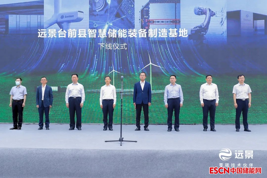 中國(guó)儲(chǔ)能網(wǎng)訊:近期河南儲(chǔ)能市場(chǎng)重磅信息接二連三。繼8月21日河南省發(fā)布“十四五”新型儲(chǔ)能實(shí)施方案和9月13日發(fā)布第一批省級(jí)獨(dú)立儲(chǔ)能電站遴選辦法,9月20日,河南首臺(tái)智慧儲(chǔ)能液冷柜式產(chǎn)品在濮陽市臺(tái)前縣正式下線,遠(yuǎn)景智慧儲(chǔ)能基地一期正式投產(chǎn)。濮陽市長(zhǎng)萬正峰、市人民政府秘書長(zhǎng)謝傳芳、臺(tái)前縣縣委書記孫慶偉、縣長(zhǎng)李志華、遠(yuǎn)景集團(tuán)高級(jí)副總裁田慶軍出席并為首臺(tái)智慧液冷儲(chǔ)能產(chǎn)品揭幕。