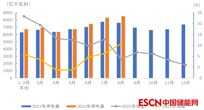 中國儲能網(wǎng)訊:1-8月,全國全社會用電增速同比提高,第一產(chǎn)業(yè)、第三產(chǎn)業(yè)和城鄉(xiāng)居民生活用電量增速高于全社會平均水平;全國28個省份全社會用電量實現(xiàn)正增長;工業(yè)和制造業(yè)用電量增速低于全社會平均水平;化工和有色行業(yè)用電量正增長,建材和黑色行業(yè)用電量負(fù)增長。
