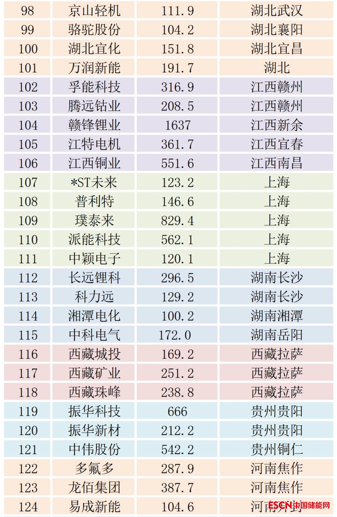 從城市分布來看,深圳獨占鰲頭,坐擁21家市值過百億的帶“鋰”上市公司;首都北京擁有7家市值過百億的帶“鋰”上市公司;四川成都擁有6家,廣東廣州擁有5家,杭州、寧波、廈門、蘇州、長沙、西安、合肥等新一線城市各有一到兩家,其余企業(yè)都散落在中小城市。