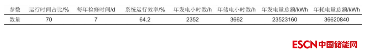 本系統(tǒng)設計運行壽命35年,系統(tǒng)效率64.2%,具體運行參數(shù)如表4所示。假定運行階段消耗的所有電能均來自風力發(fā)電,根據(jù)Ecoinvent數(shù)據(jù)庫,風電的度電二氧化碳排放量為21.1 g。運行階段涵蓋范圍包括儲能系統(tǒng)啟動過程、系統(tǒng)運行過程、系統(tǒng)在長期運行過程中所需要的替換件及檢修等部分。由于系統(tǒng)所用的水及潤滑油均為閉路循環(huán),其損耗忽略不計。