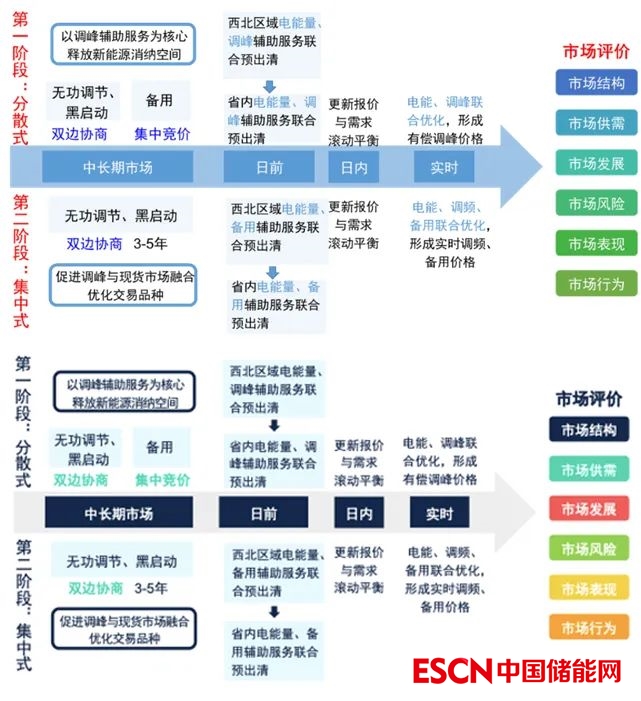 考慮到輔助服務(wù)市場與現(xiàn)貨市場極強的相關(guān)性;西北電力輔助服務(wù)市場在充分考慮現(xiàn)有市場體系的情況下,采取與現(xiàn)貨市場建設(shè)相適應(yīng)的建設(shè)模式,分兩階段開展輔助服務(wù)市場建設(shè)。