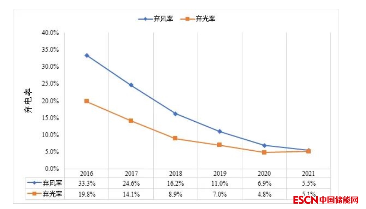 圖4 西北電網(wǎng)棄風棄光率變化情況(2016~2022)