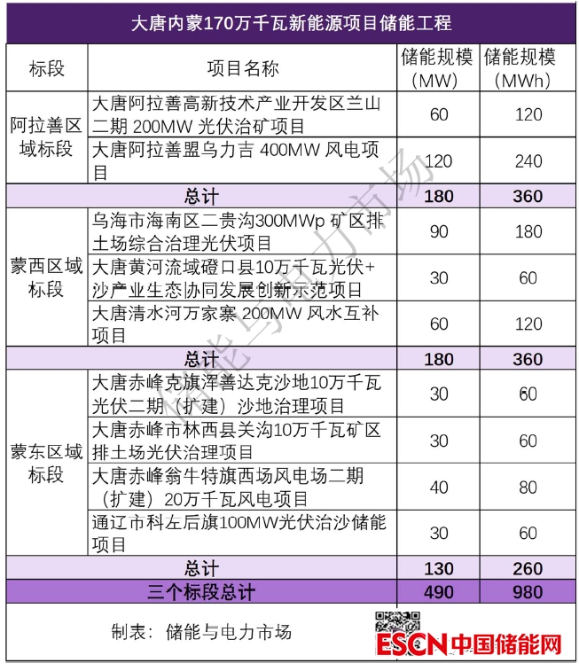 大唐內(nèi)蒙古分公司170萬千瓦新能源項目儲能工程共包含9個新能源配儲項目,儲能與電力市場8月初曾報道過此項目的招標情況,可參考文章:490MW/980MWh!大唐170萬千瓦新能源儲能工程EPC打捆招標。