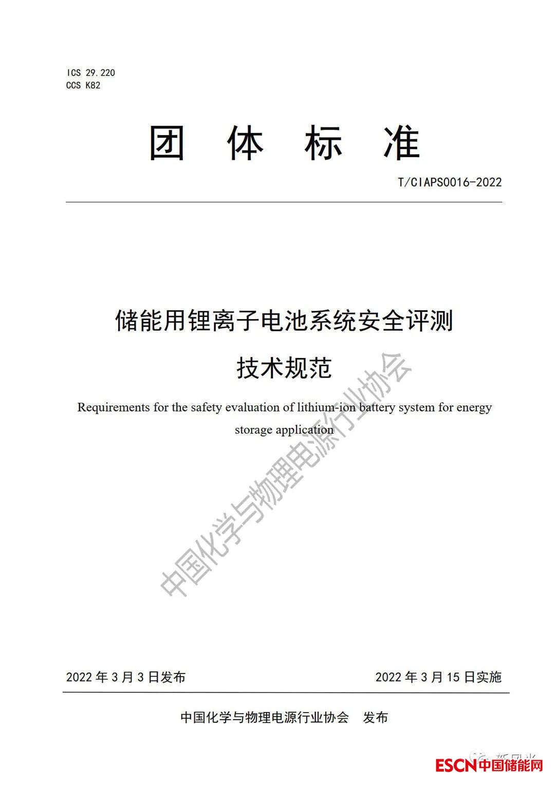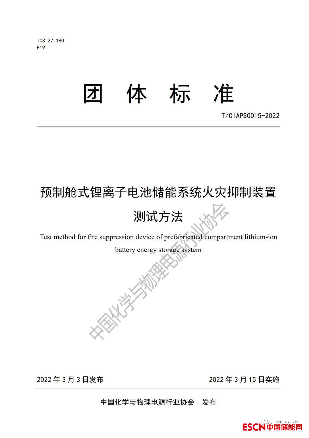 中國儲能網(wǎng)訊:近日獲悉,由中國化學(xué)與物理電源行業(yè)協(xié)會組織發(fā)起,包括新風(fēng)光電子科技股份有限公司(以下簡稱新風(fēng)光)在內(nèi)的多家知名儲能企業(yè)、科研院所及高校共同參與編制的團(tuán)體標(biāo)準(zhǔn)《預(yù)制艙式鋰離子電池儲能系統(tǒng)火災(zāi)抑制裝置測試方法》(T/CIAPS0015-2022)、《儲能用鋰離子電池系統(tǒng)安全評測技術(shù)規(guī)范》(T/CIAPS0016-2022),于2022年3月15日已正式實(shí)施。截止目前,新風(fēng)光先后主持并參與了22部國際、國家、行業(yè)及團(tuán)體標(biāo)準(zhǔn)的起草審定工作。