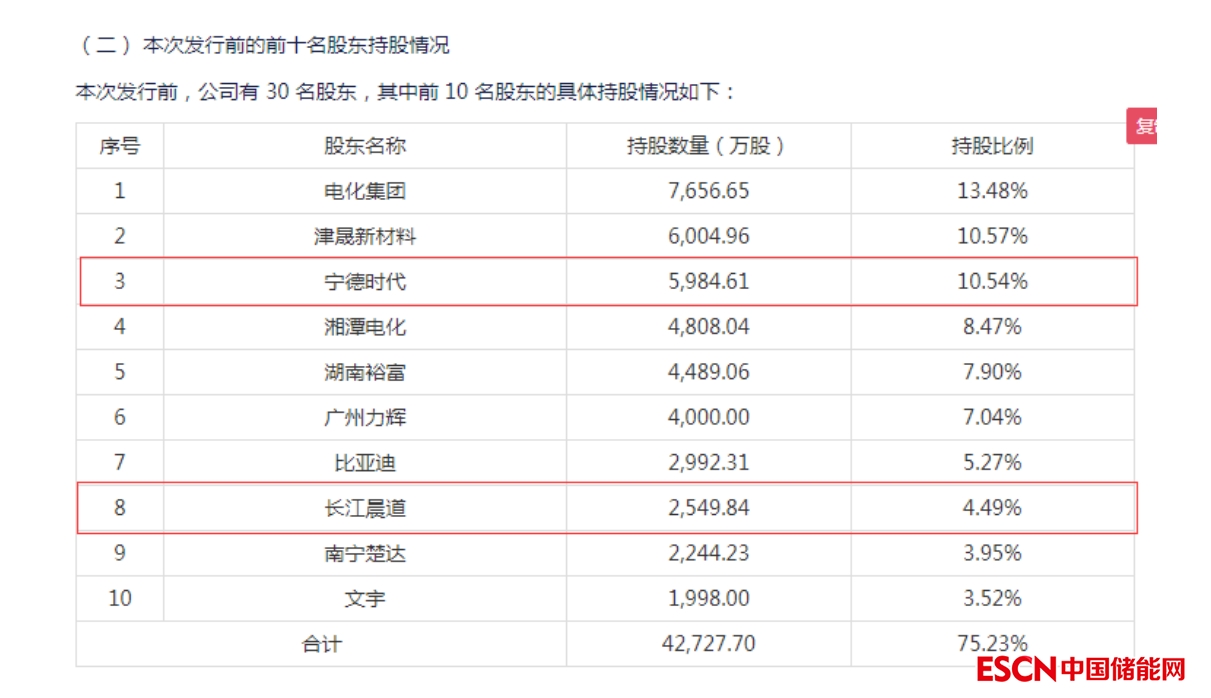 不過(guò),金楊股份在招股書(shū)(上會(huì)稿)中也表示,公司與寧德時(shí)代建立了合作關(guān)系,相關(guān)產(chǎn)品已通過(guò)前期驗(yàn)證,正處于小批量供應(yīng)階段。而長(zhǎng)江晨道,正是金楊股份第五大股東,持股比例4.46%。