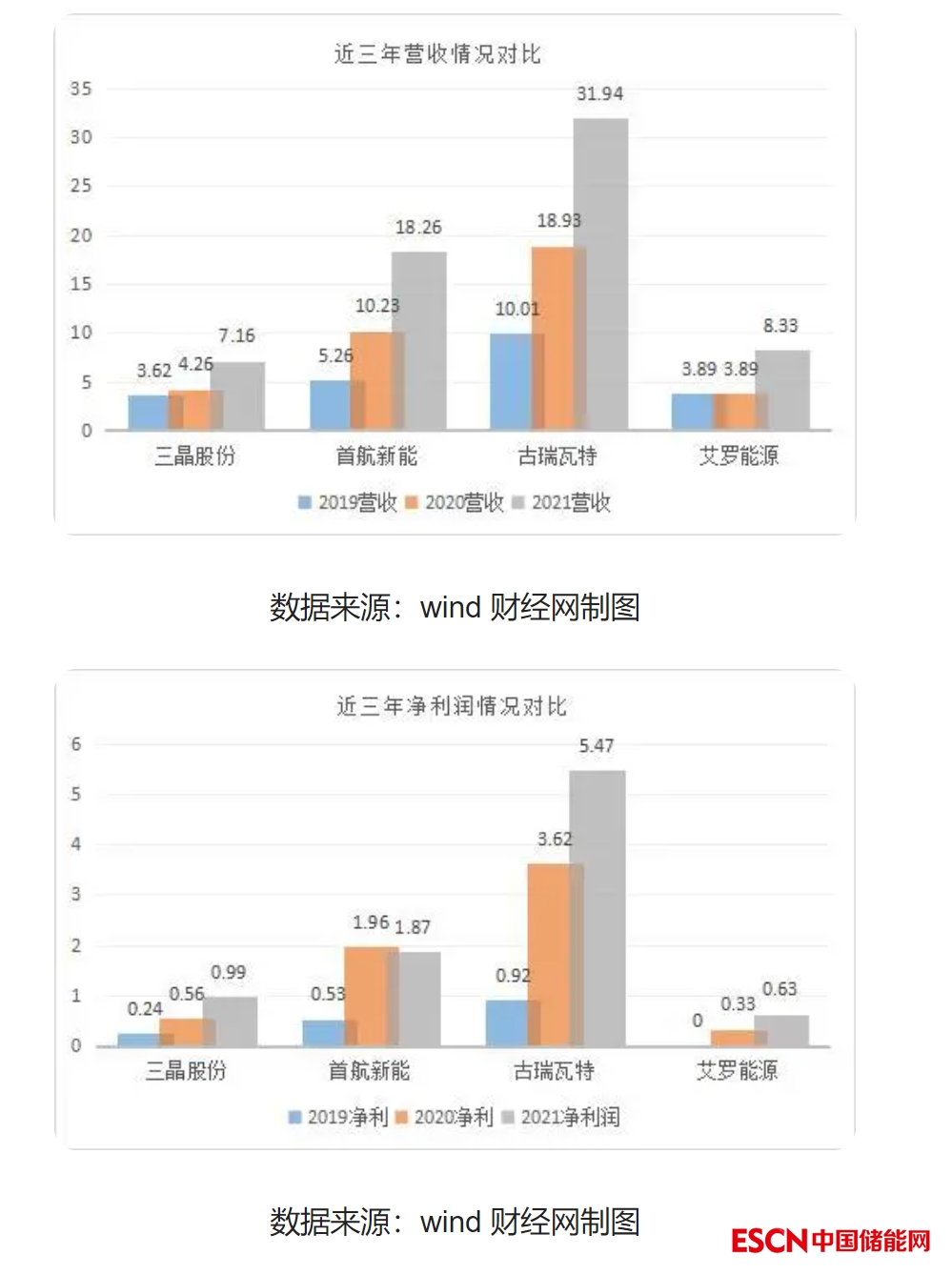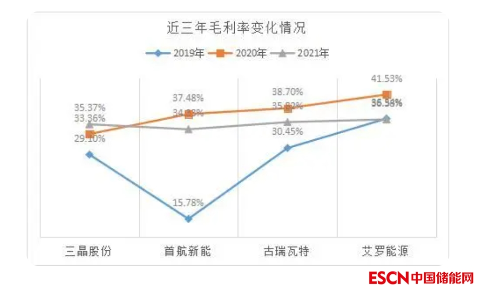 按營收規(guī)模從大到小排序,2019-2021年,古瑞瓦特營收從10.01億元增至31.94億元,凈利潤從0.92億元增至5.47億元;首航新能營收從5.26億元增至18.26億元,凈利潤從0.53億元增至1.87億元;愛羅能源營收由3.89億元增至8.33億元,凈利潤從13.14萬元增至0.63億元;三晶股份營收從3.63億元增至7.16億元;歸母凈利潤從0.24億元增至0.99億元。
