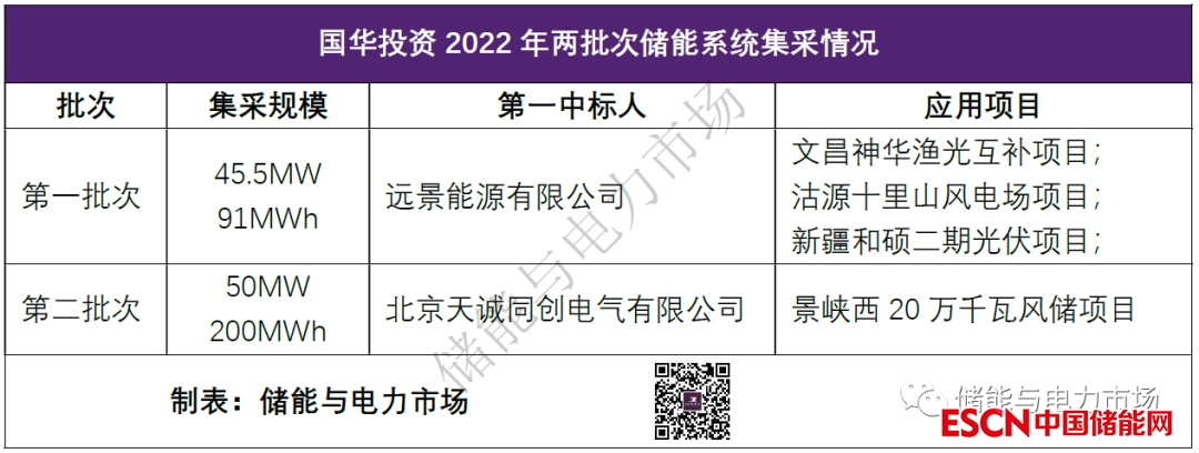 至此,國(guó)華投資本年度已完成了兩批次共計(jì)95.5MW/291MWh的儲(chǔ)能系統(tǒng)集采,用于新疆、海南、河北等地的四個(gè)新能源儲(chǔ)能項(xiàng)目。兩批次的儲(chǔ)能系統(tǒng)訂單被遠(yuǎn)景和金風(fēng)旗下的天誠(chéng)同創(chuàng)所瓜分。